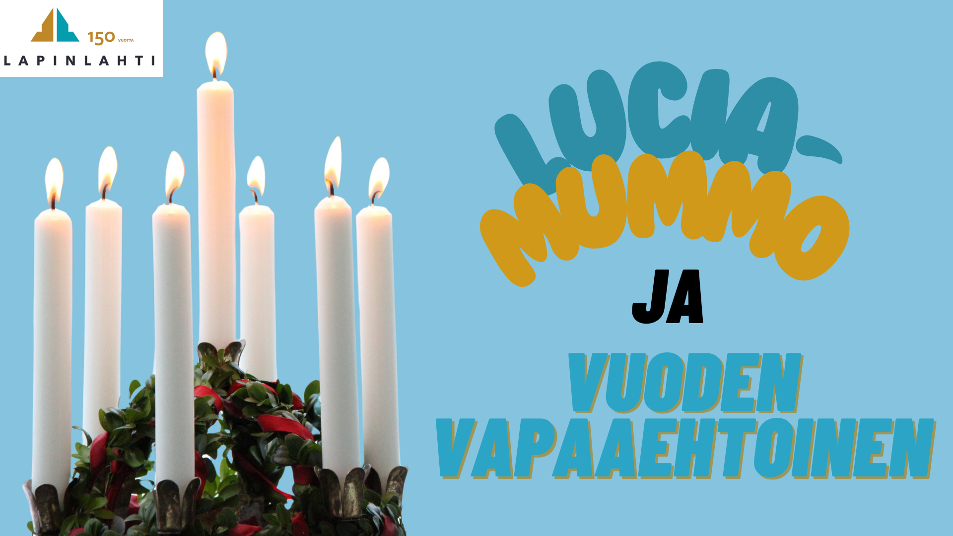 Lapinlahden ikäihmisten neuvosto hakee ehdokkaita palkittavaksi Lucia-mummona ja Vuoden vapaaehtoisena Lucian päivän juhlassa 13.12. Valinnan palkittavista tekee ehdotusten pohjalta Lapinlahden ikäihmisten neuvosto. Ehdotuksia voivat tehdä kaikki halukkaat: järjestöt seurakunta, kuntalaiset ja muut toimijat.