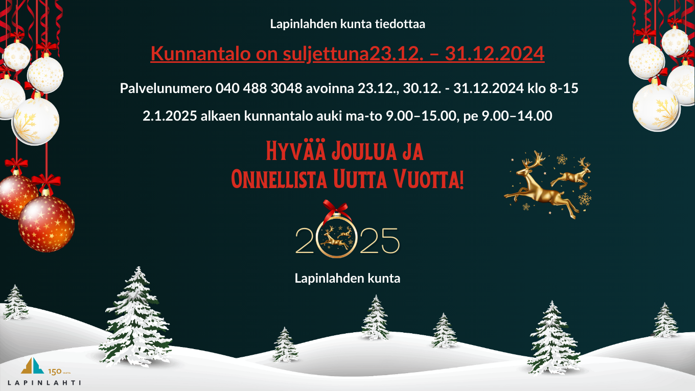 Kunnantalo on suljettuna 23.12. – 31.12.2024