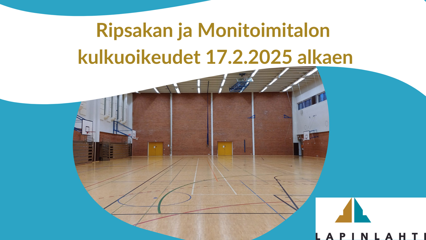 Liikuntahallien ja salien kulkuoikeuksiin ja iltavalvontaan on tulossa muutoksia (Monitoimitalo ja Ripsakan kuntosali)
