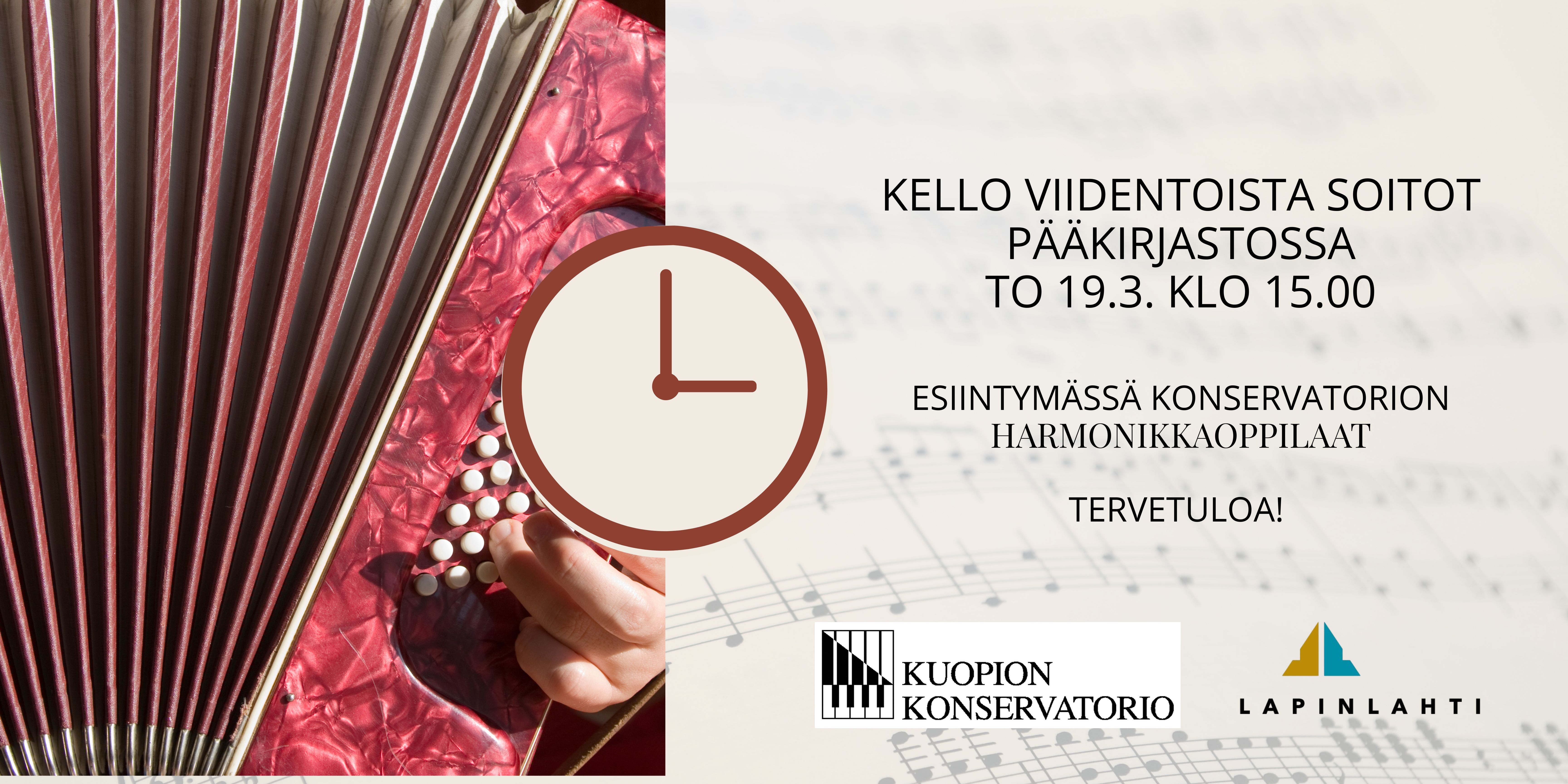 Konsertissa esiintyvät Kuopion konservatorion Lapinlahden toimipisteen harmonikkaoppilaat.