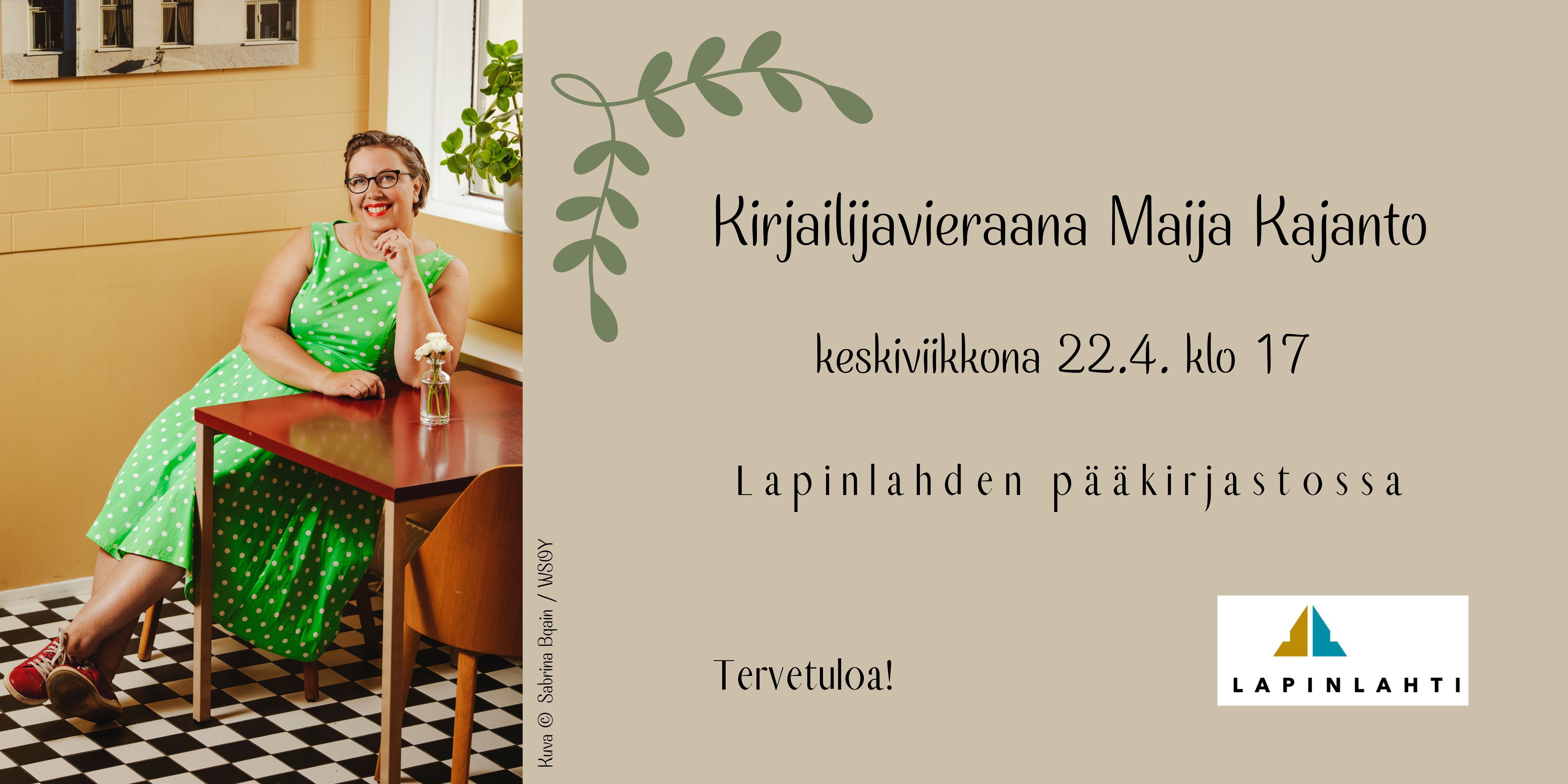 Kirjailijavieraana Maija Kajanto Lapinlahden pääkirjastossa keskiviikkona 22.4. klo 17.