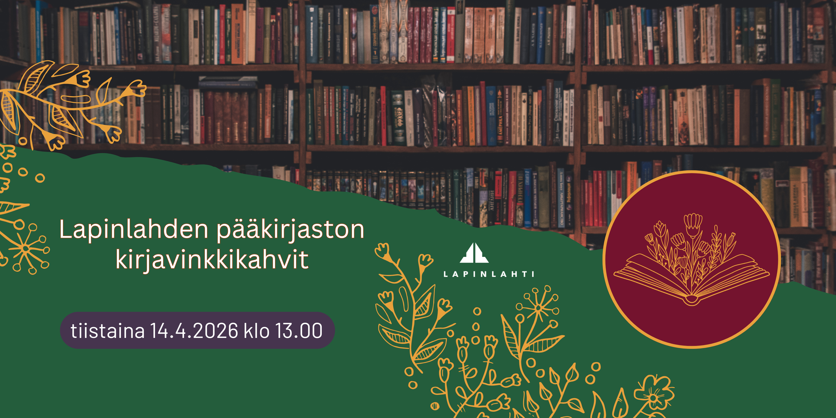 Tule kuuntelemaan, kun kirjaston henkilökunta vinkkaa kirjavinkkikahveilla kirjoja tiistaina 14.4.2026 klo 13.00 Lapinlahden pääkirjastossa.