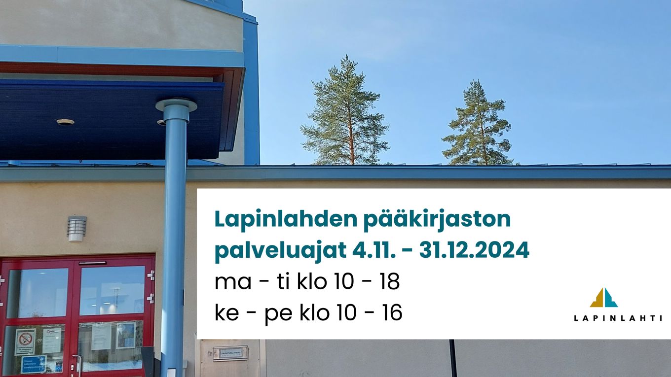 Lapinlahden pääkirjaston palveluajat 4.11. - 31.12.2024
