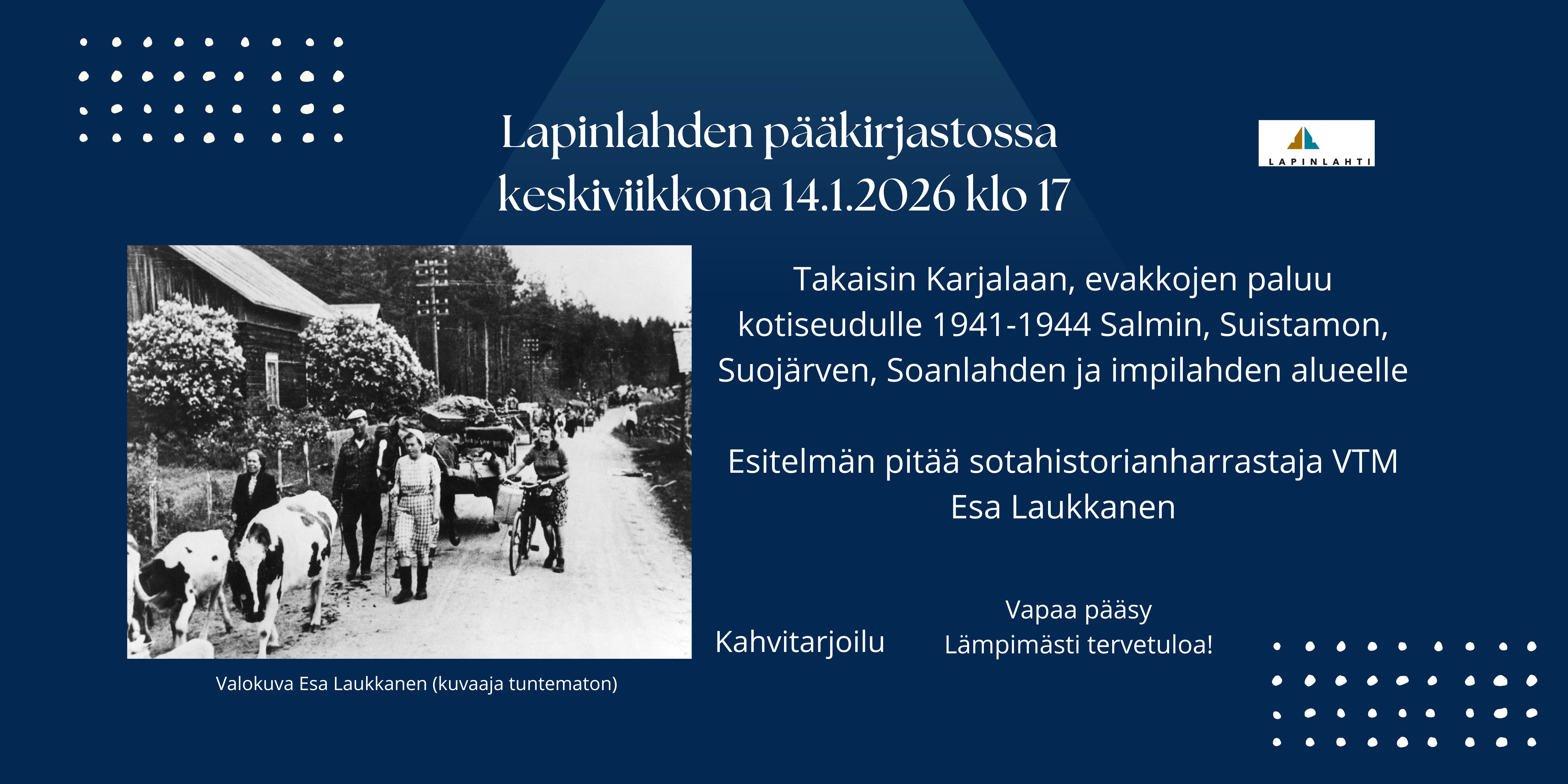 Julkaistu 11.12.2025 Esa Laukkasen luento Takaisin Karjalaan Lapinlahden pääkirjastossa
